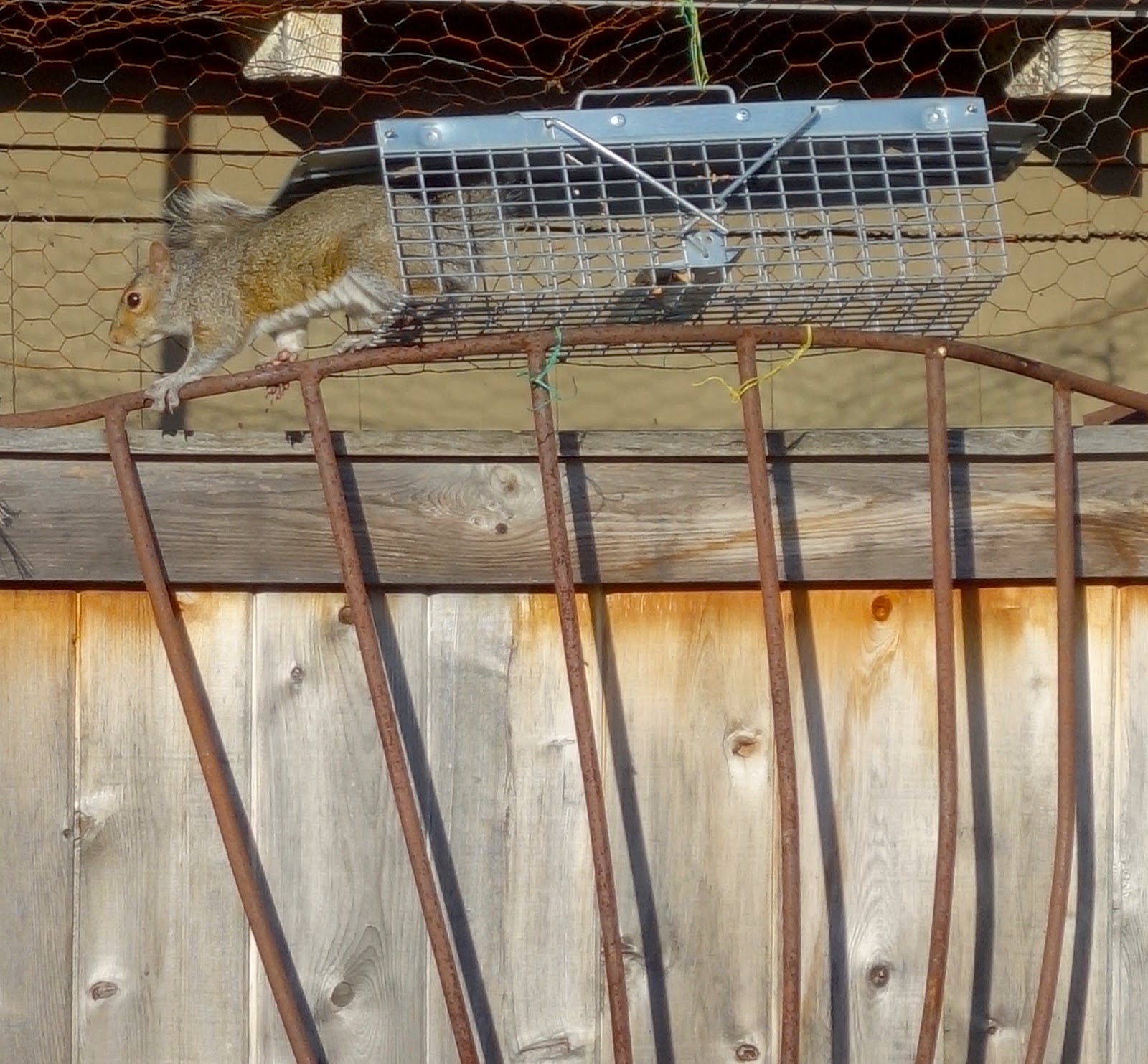 Nick opened the gate and walked into the garden just as I was putting down the Havahart trap containing one very upset squirrel.